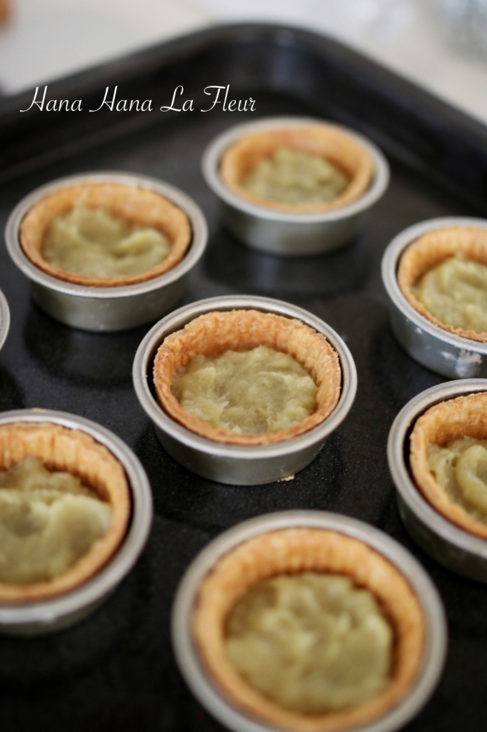 熱々のうちにこしたら、空焼きしたパイ生地の中へ