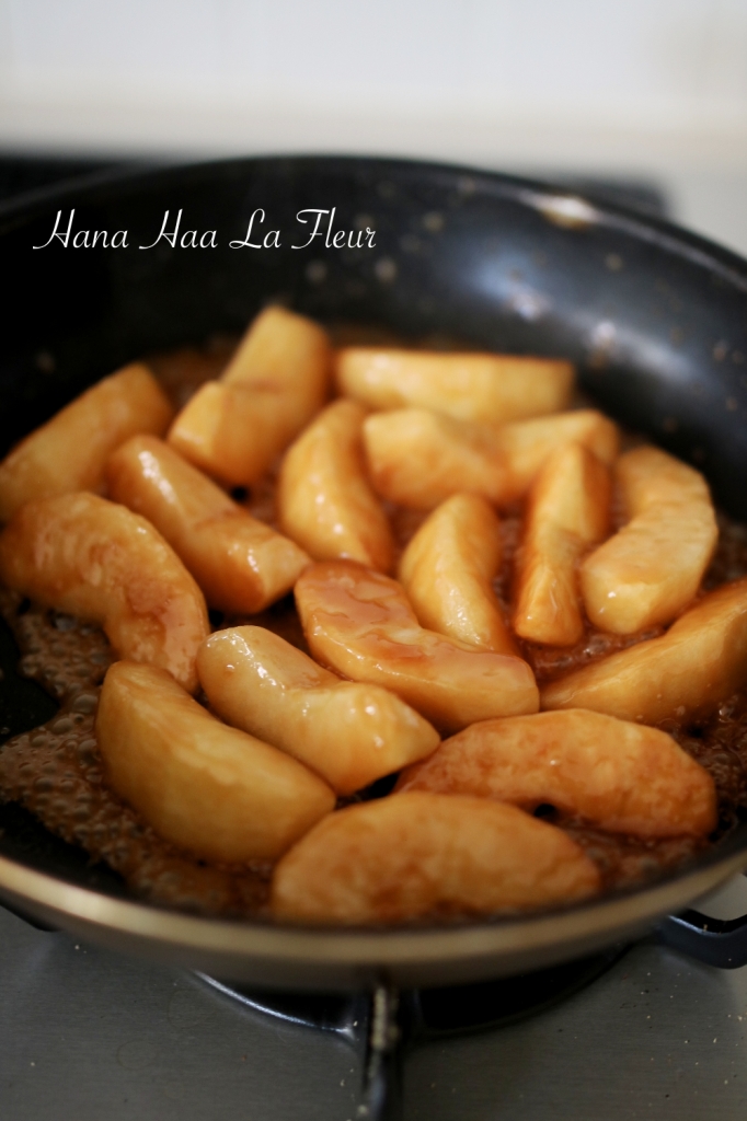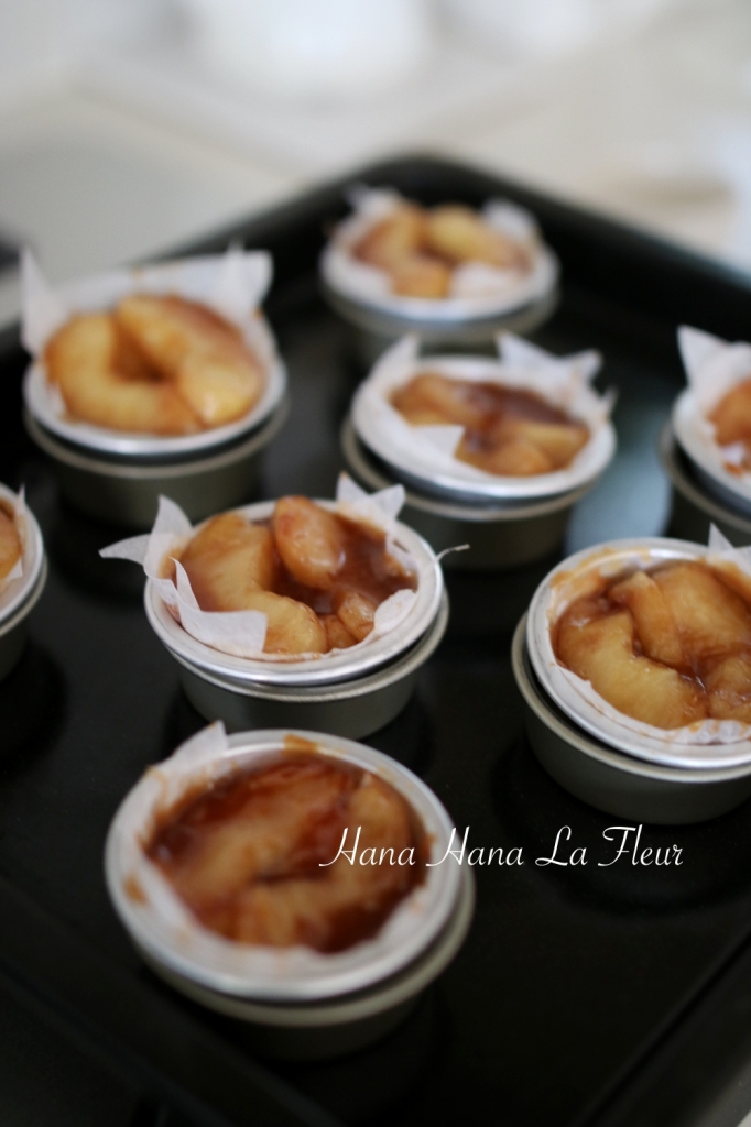 りんごをキャラメル色にソテーしたら、型に移してオーブンで1時間焼きます