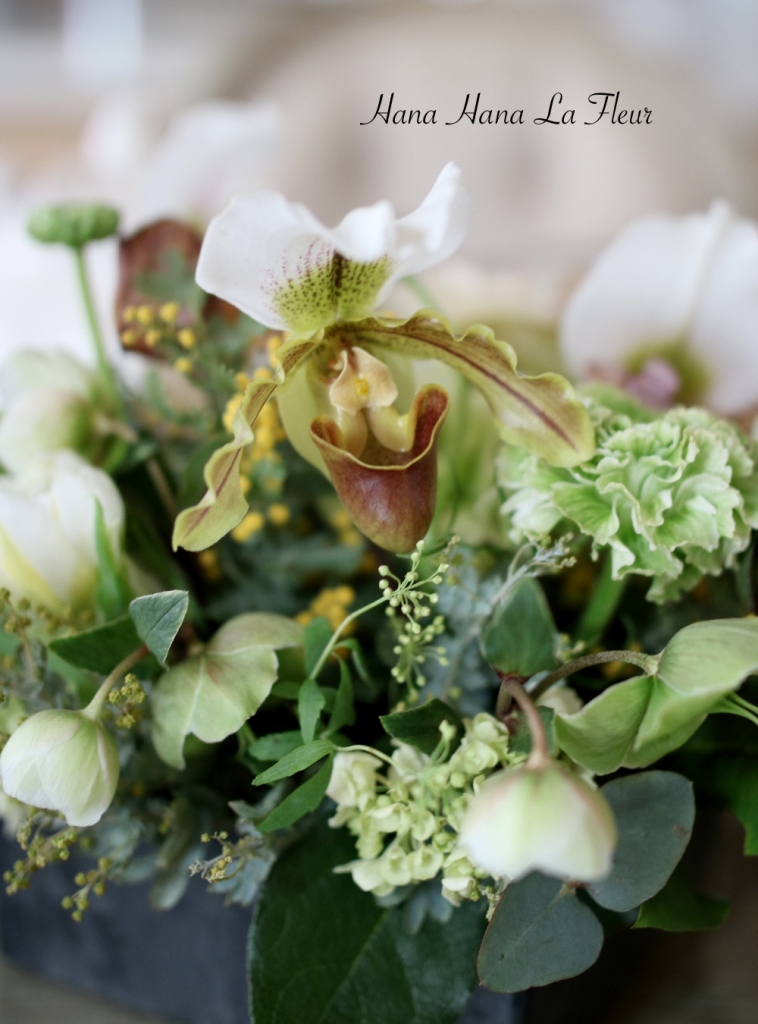 今週のお花は、このパフィオペディラムに一目惚れしてアレンジしてもらいました^^