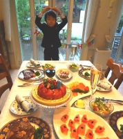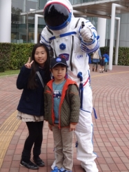 快くん8歳のお誕生日 将来の夢 [宇宙飛行士] サプライズプレゼント! 「筑波宇宙センター」に行って来ました。 何と、年に1・2度行われるJAXAの特別公開イベントの日が、ピッタリお誕生日!!! すごい人でしたが、いろいろな体験が出来て、おもしろかったです。 そして、映画[宇宙兄弟]で、小栗旬が宇宙飛行士の訓練で使用した施設内部の見学は、違った意味で大興奮! 快くんも夢に向かって頑張るよ~ 夕方からは、お家で「お誕生パーティー!」パーティー準備が整い、快くん登場~ なんと!正装です。 今日はこれを着ると決めていたそうです。 サプライズ返しでした! 愉快な快くん、お誕生日おめでとう!