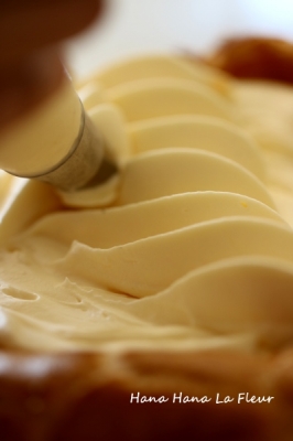 将来はお菓子教室を開きたいという キムラさんの 初サントノレ絞り お見事
