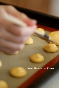 しっかりと練り上げたシュー生地を 形よく絞ったら~
