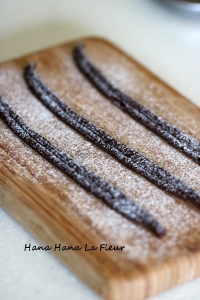 バニラビーンズの型で作ったビターチョコレートをあしらえば完成です