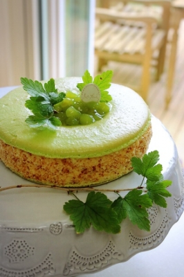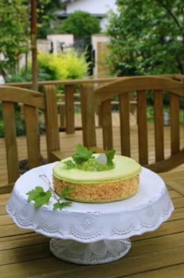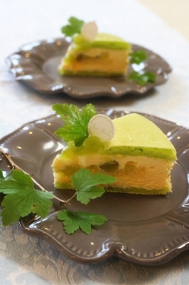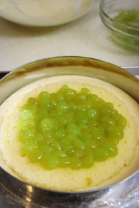 をベースに、真ん中はジェノワーズ・デラウェアーのジュレ