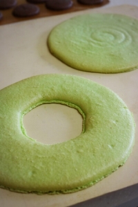 大きな丸型と、ドーナッツ型のマカロンで挟んでいます