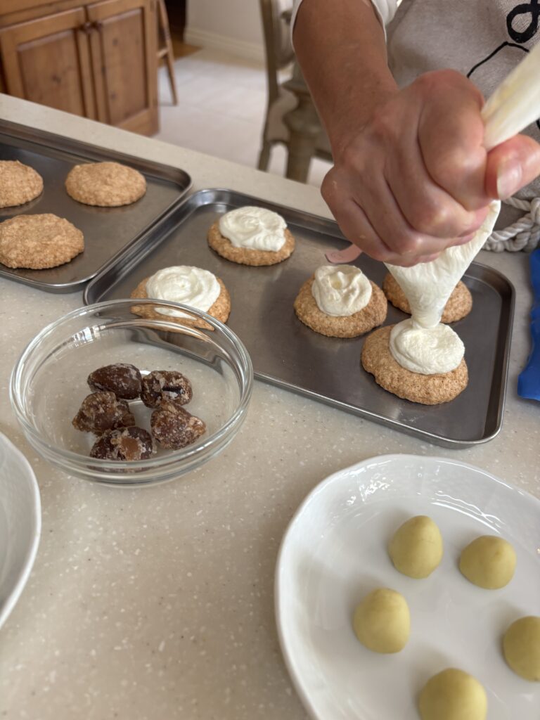 メレンゲを土台にマロングラッセをシャンティーで包みます