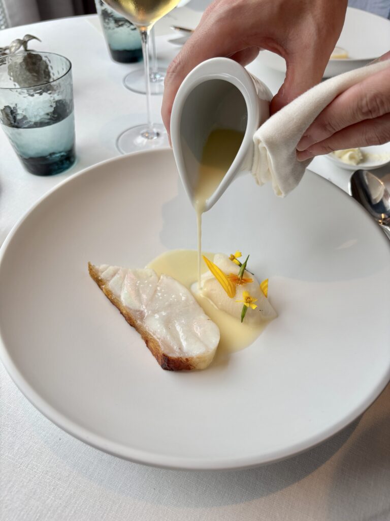 クエ・大根・ジュニパーベリーの香りをつけた蒸留酒