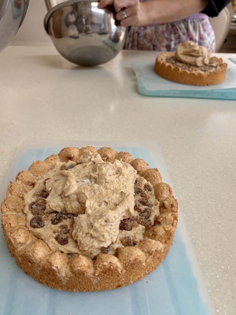 ダコワーズ生地の土台に、マロンクリームとマロングラッセ