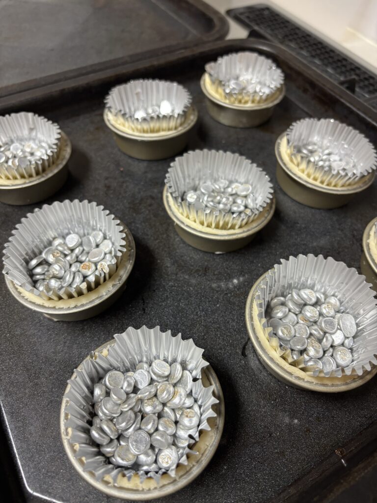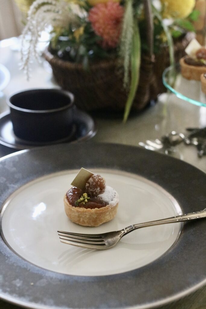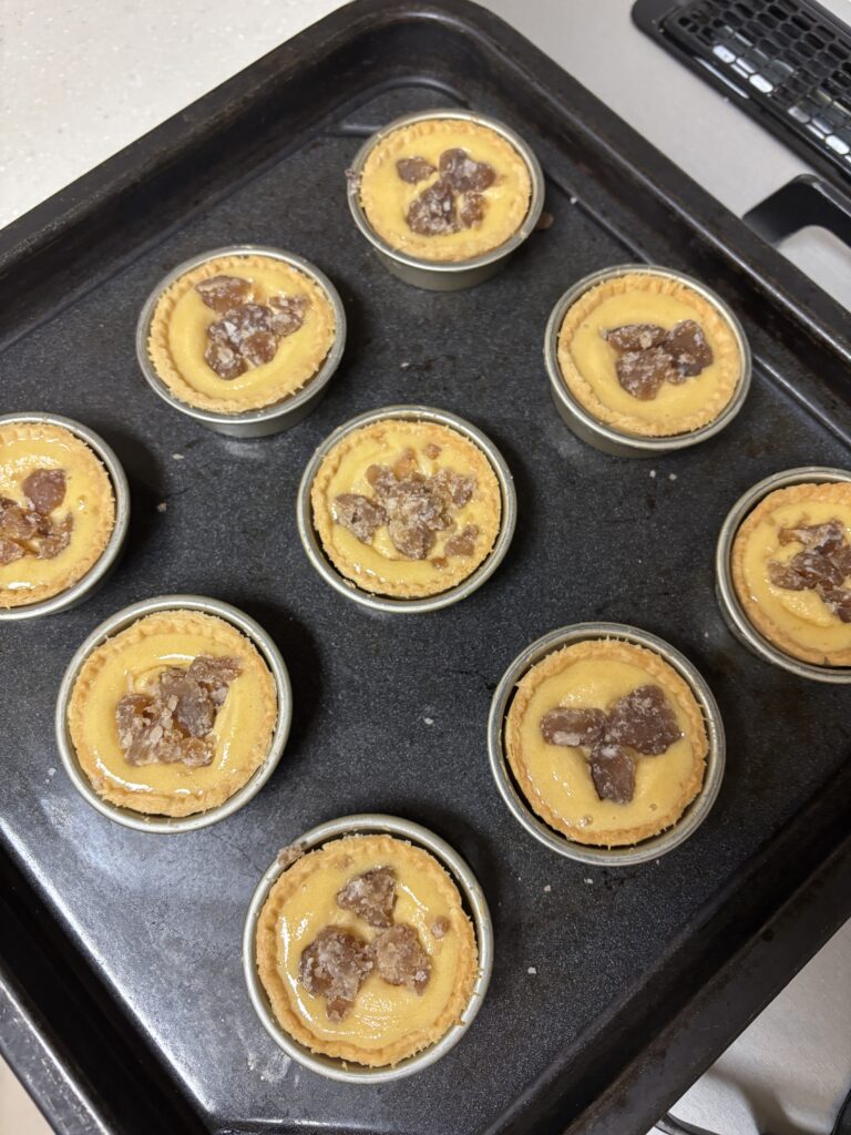 練り込みパイ生地を型敷きし、しっかり空焼きの後