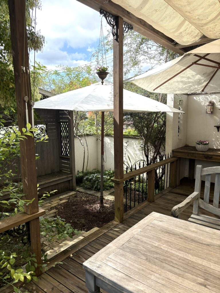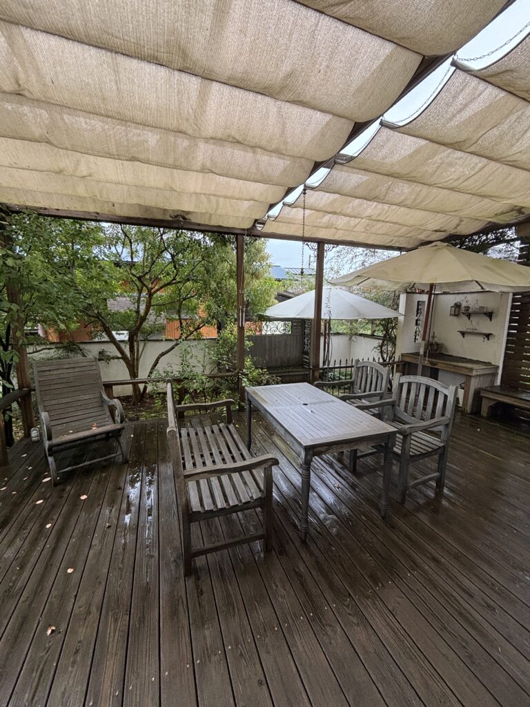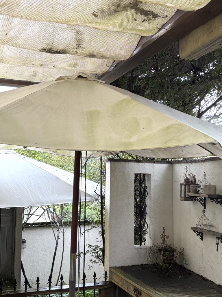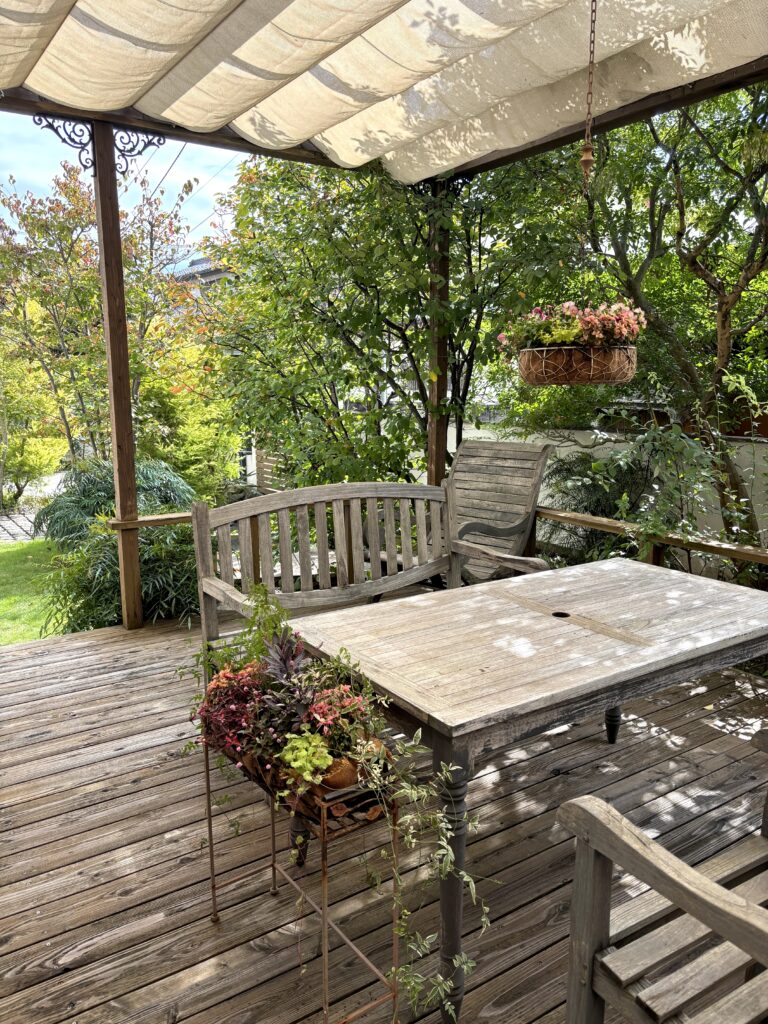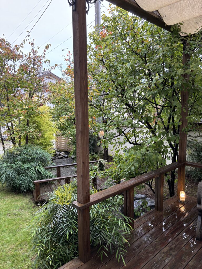 パラソル、サンシェード、デッキ、ガゼボ、外壁、 駐車場スペース 一気に頑張った ^^
