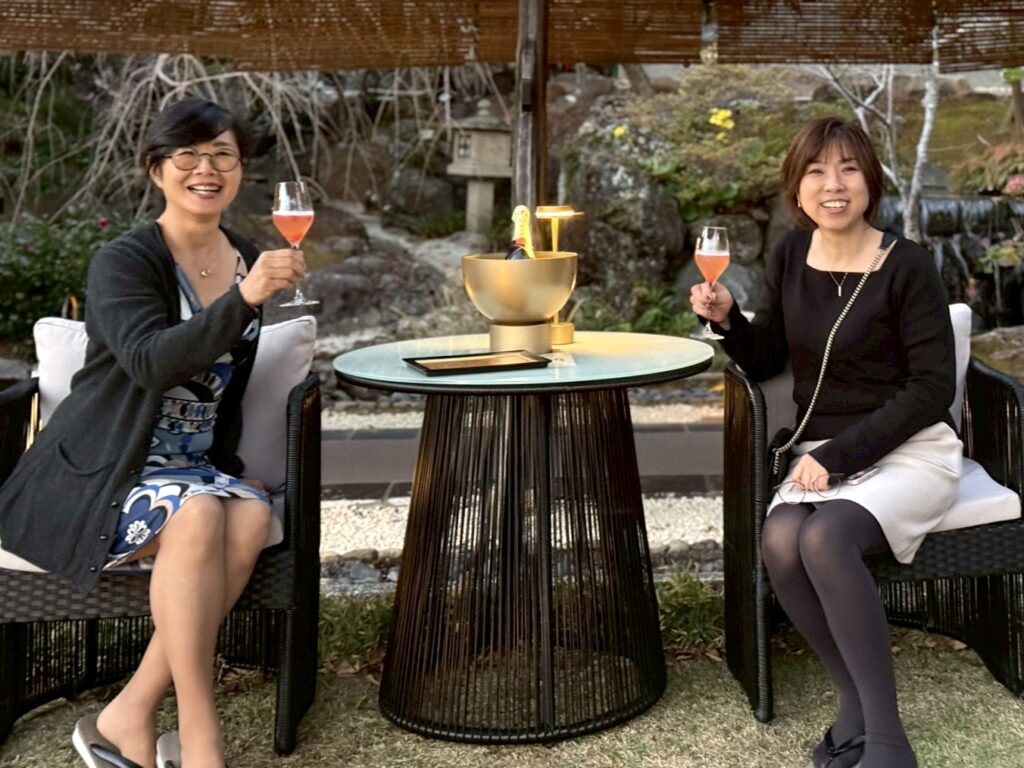 足湯に浸かりながら夕暮れ時 話が盛り上がる