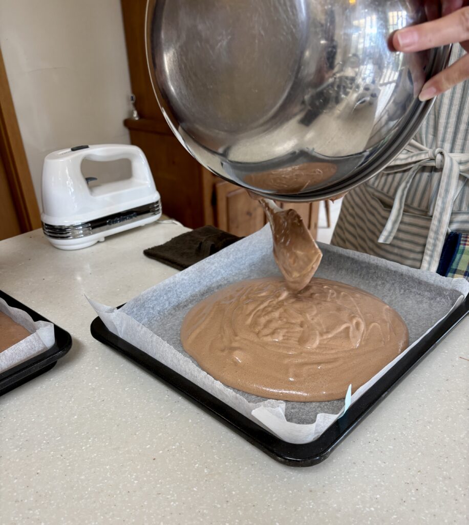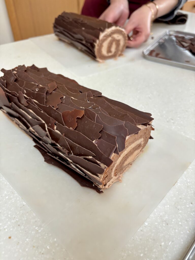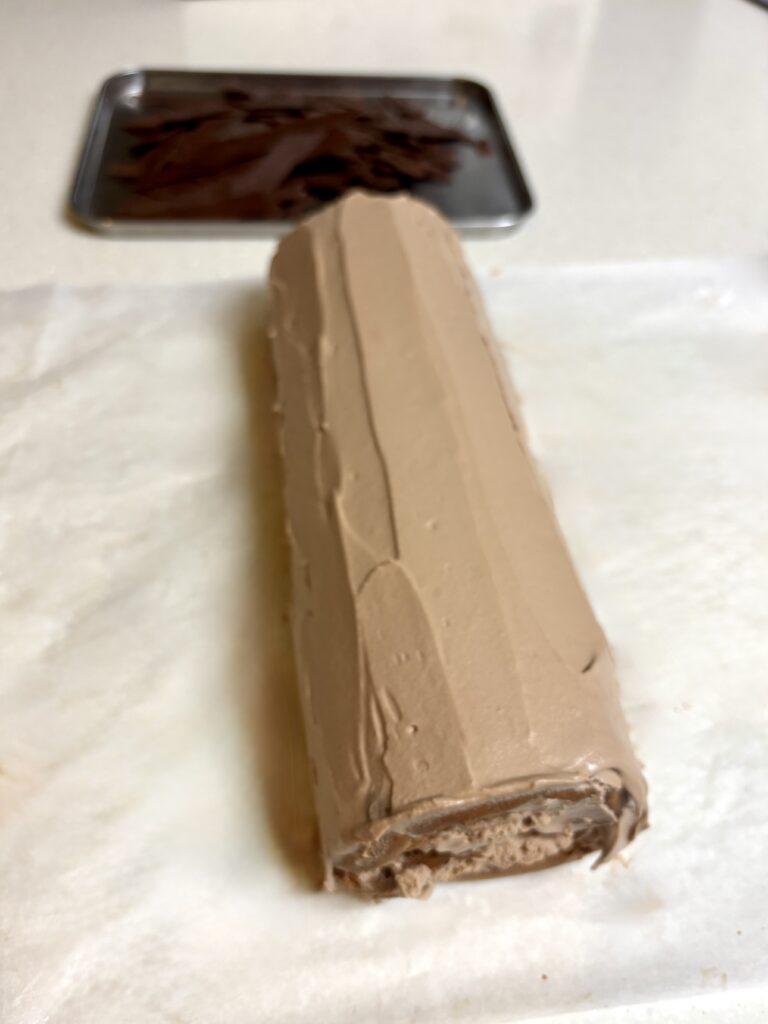テンパリングしたチョコを丁寧に貼り付けていきます