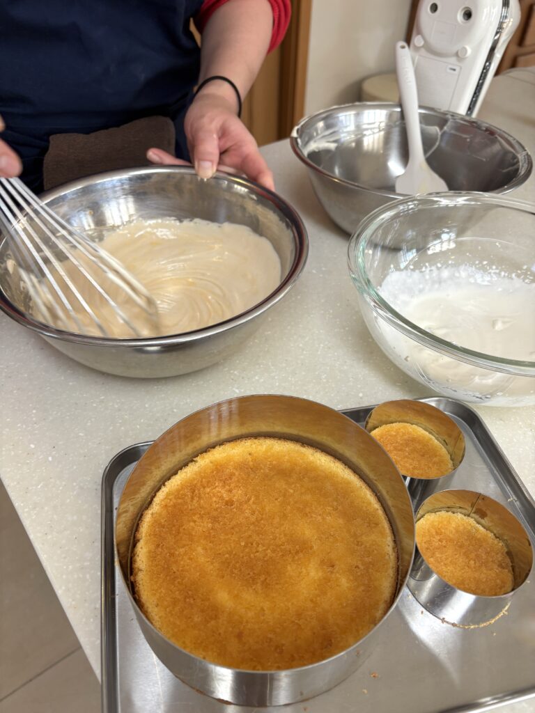 ジェノワーズ にひまわり蜂蜜を染み込ませ