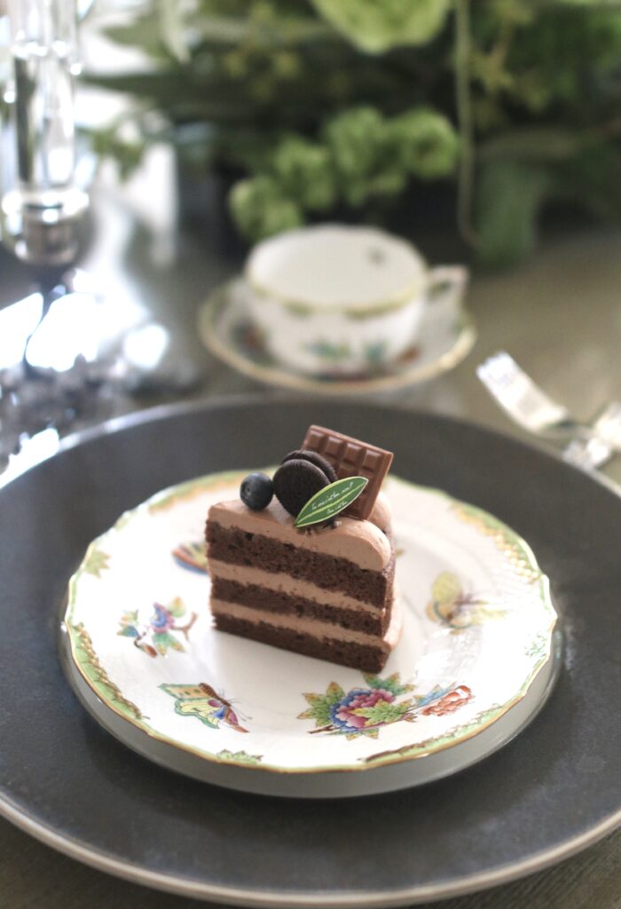 ココアのジェノワーズ生地にビターチョコシャンティーを合わせて