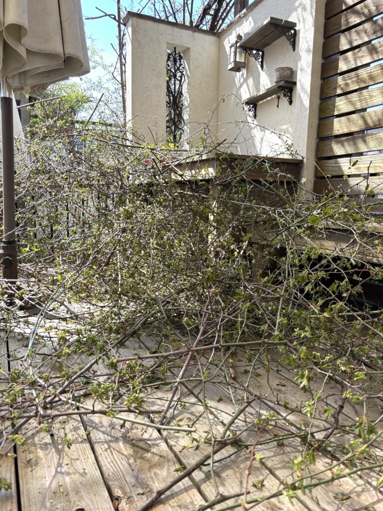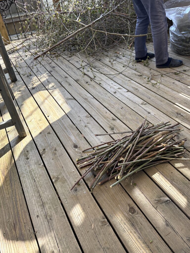 この枝を短く切って袋にいれる作業のが大変だということに気づき気が遠くなる〜 ( ´Д`)